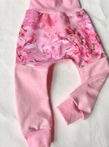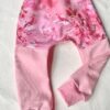 Dressikangast baggy püksid, roosal põhjal lilled ja papagoid, suurus 80/86.