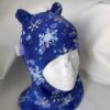 Pehme ja mugav meriinofliisiga  müts  on sobib külmadeks talvepäevadeks. 100% meriinofliis vooder kaitseb tuule ja külma ees ning hoiab pea ja kõrvad soojas. Mütsil pealmine kangas puuvill, tumesinenel põhjal helesininsed ja hõbedased lumehelbed.