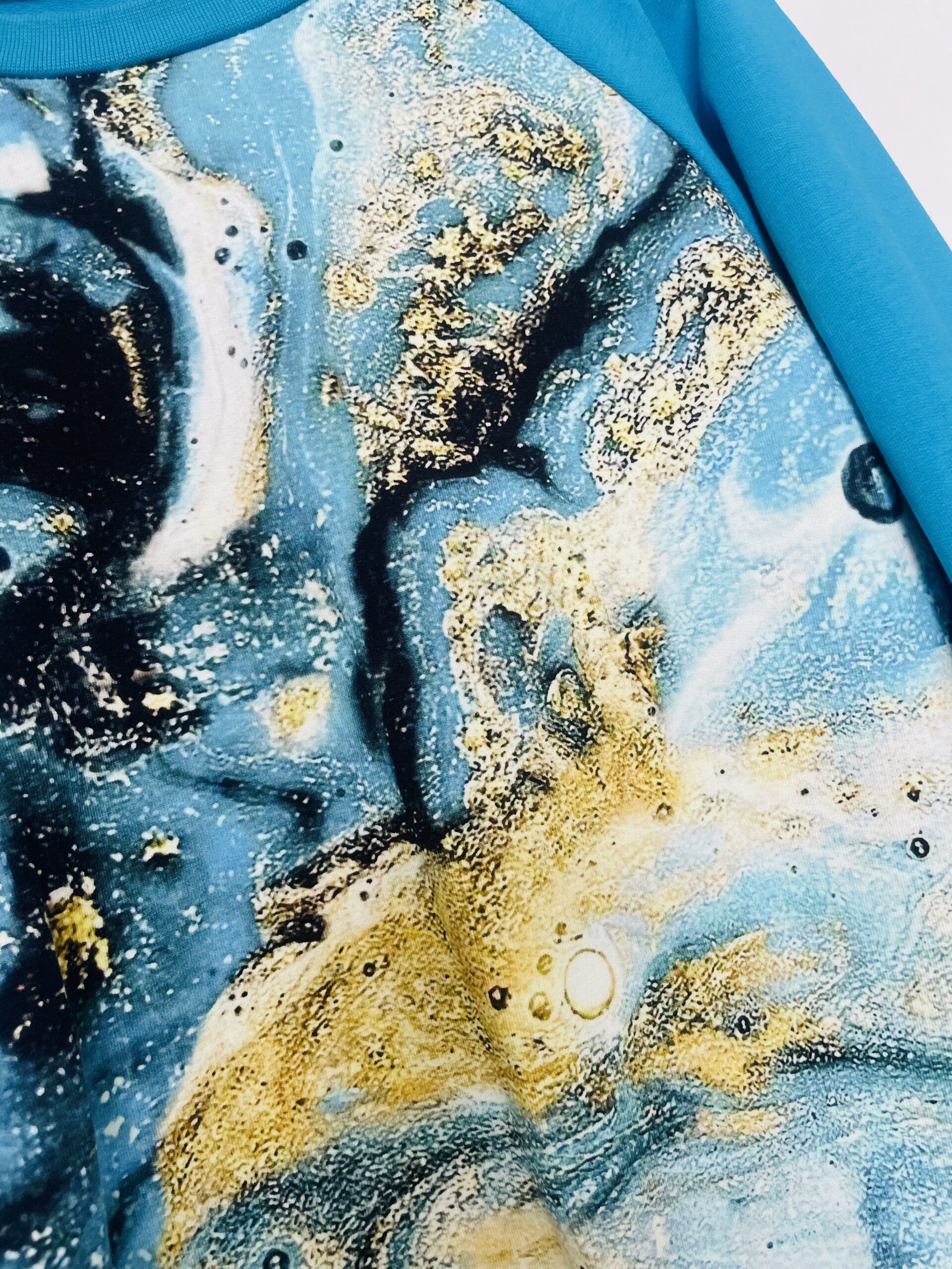 Sinine mustriga dressipluus.