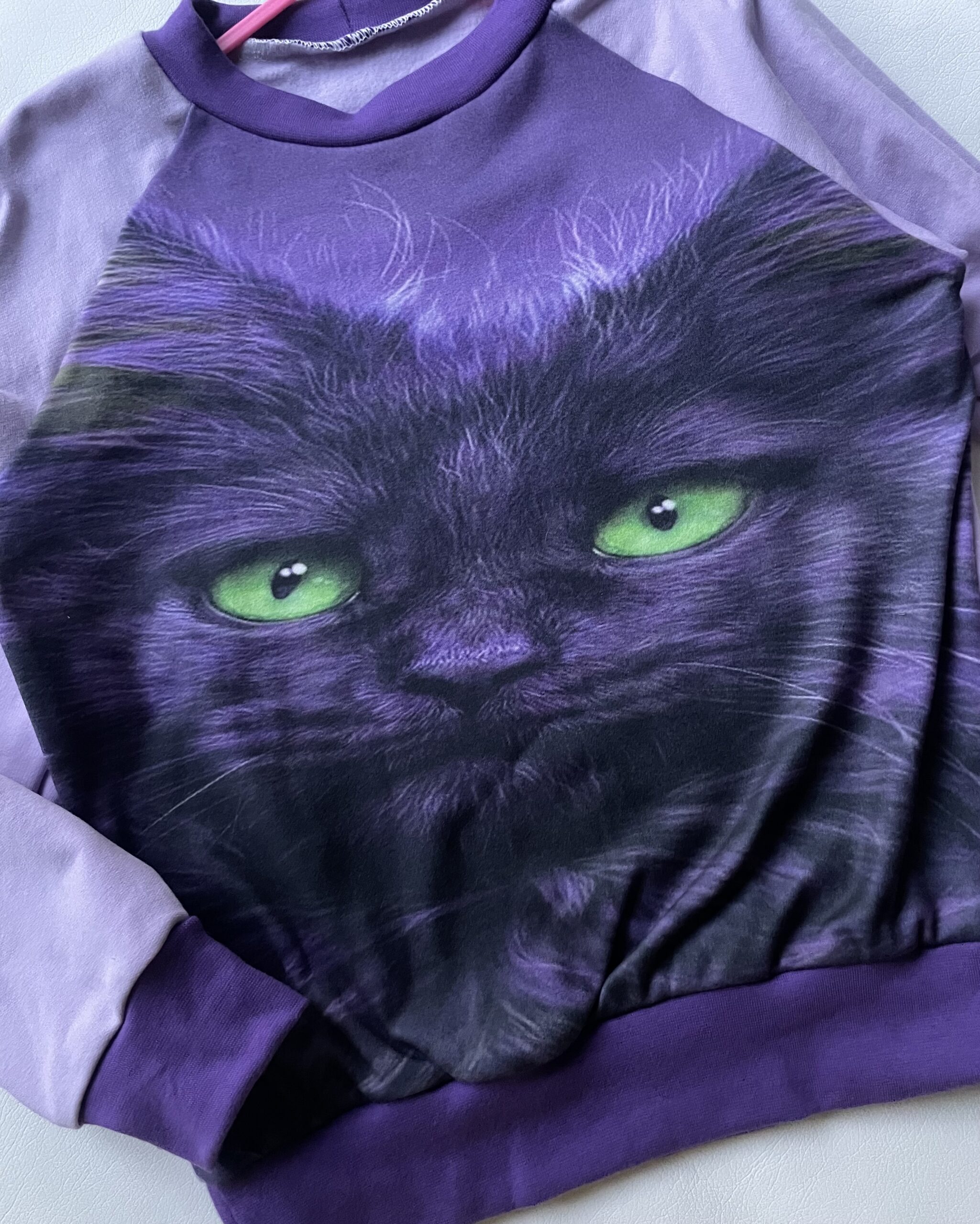 Kassi pilt veluurist, varrukad ja selg helelillast uhutud dressikangast.